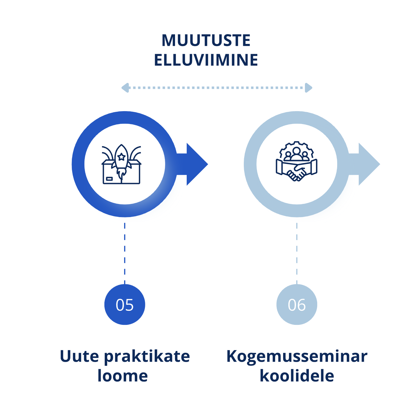 Kui kool on koostanud arenguplaani, jätkub nõustamine selle elluviimise etapis. Nõustaja toetab meeskonda muutuste kavandamisel ja nende sidumisel Teadmuskooli mudeli praktikatega. Fookuses on õpetajate osalus arendusprotsessis, professionaalne eestvedamine ning muutuste sidusus erinevate kooli tasandite vahel. Nõustamine aitab hoida muutused fookuses ja toetab tegevuste mõjususe hindamist. Lähenemine on paindlik ja vastab iga kooli vajadustele.